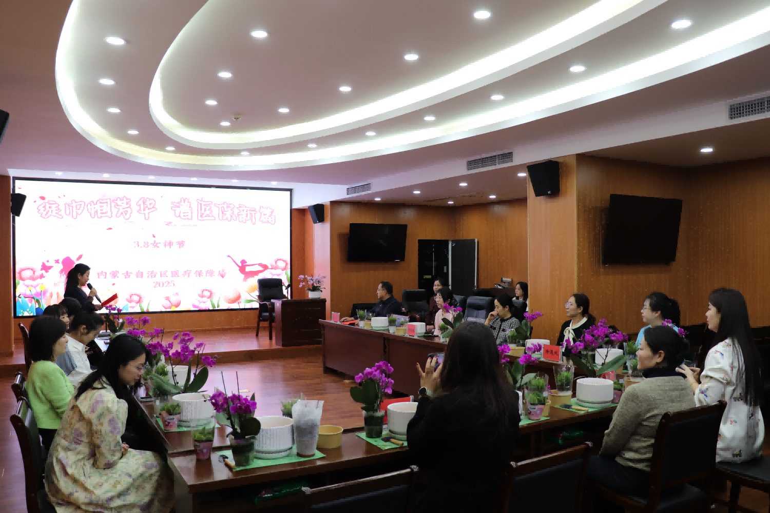 为庆祝第115个“三八”国际劳动妇女节,2025年3月7日,自治区医保局举办“绽巾帼芳华 谱医保新篇”主题艺术盆景制作活动。局党组成员、副局长浩蒙同志出席活动,对女职工表达了节日祝福。